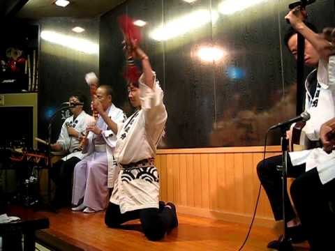 Aaah!! They are really awesome! Two of them recently played at Shamisen Katoh’s concert hall. Anyway, as Gerry said, they play regularly at Oiwake, the minyou bar in Asakusa. Gerry and I went to see them together. It was very entertaining.