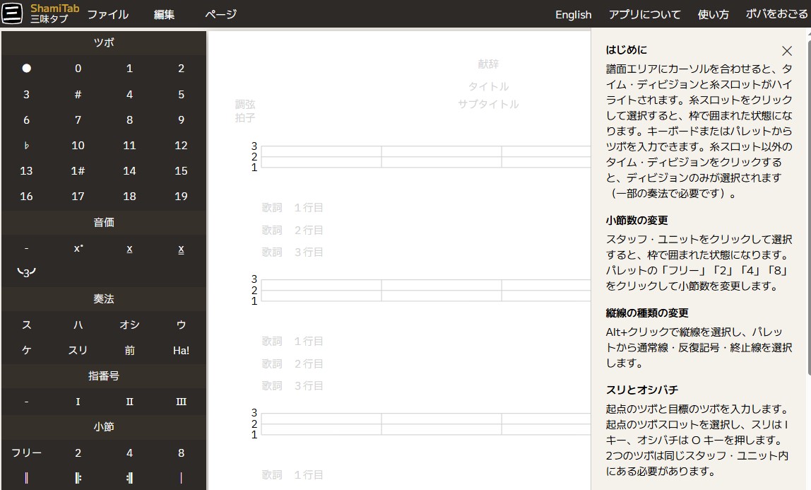 I have created a shamisen notation app. All of the main notation markings can be used as well as writing lyrics. The editing features that will help save time are coming in an update. Once I get enough feedback I’ll probably start designing a version 2. It is currently live at https://shamiworks.github.io/ShamiTab/ and if you are able, I would love some feedback at this Google Form https://forms.gle/WFv3D6mqqEGeypJU8